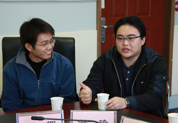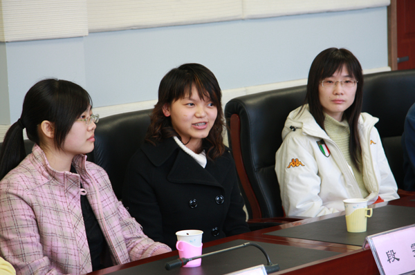 座谈期间,评估专家还对我校德育答辩工作予以了充分肯定,并且饶有兴趣地询问同学们时政知识的掌握情况,来自外国语学院的邹琦同学回答十分踊跃,当专家得知邹琦所学专业为日语时,问他是否能谈一下对中日关系的看法。邹琦同学回答沉着,俨然发言人的姿态,他从安倍晋三下野、福田康夫执政分析,认为中日关系虽有风浪,但两国的地缘、国际趋势等因素会让两国关系向着友好的方向发展。他的回答赢得了专家的一致好评。