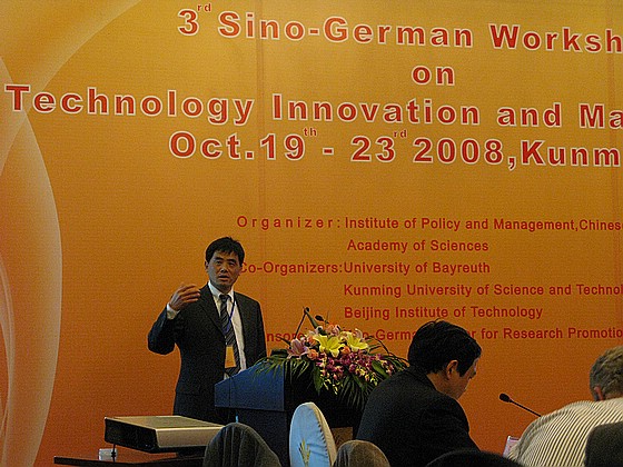 经自然科学基金委中德科学中心批准,并在中德科学中心的支持下,我校管理与经济学院与中国科学院科技政策与管理研究所、德国拜罗伊特大学及昆明理工大学于2008年10月19日至23日在云南昆明举办了第三届中德技术创新与管理研讨会,来自德国拜罗伊特大学、柏林工业大学、雷根斯堡大学、弗朗豪夫创新研究中心、纽伦堡-爱尔朗根大学、联邦军事大学等17名德国专家学者和来自中国科学院、清华大学、浙江大学、西安交通大学、中国科技大学、昆明理工大学以及我校的15名学者教授参加了研讨会,并围绕创新政策与可持续发展、研发管理与创新绩效、技术创新与知识产权管理、企业技术创新、技术获取与知识管理等专题做专题报告。