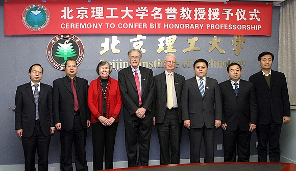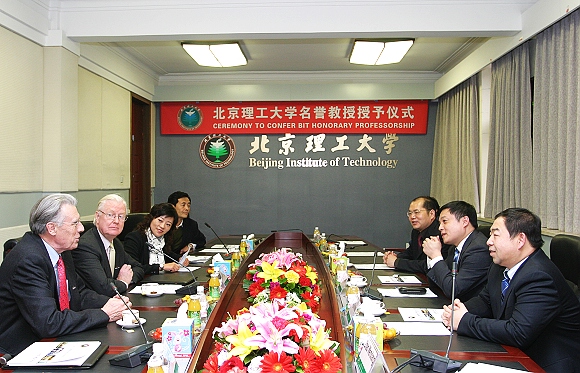 聘任仪式由杨树兴副校长主持。胡海岩校长向两位教授颁发聘书,佩戴金年会jinnianhuicom校徽。聘任仪式上,管理与经济学院院长李金林介绍了詹姆斯·莫里斯爵士的学术成就,计算机科学技术学院副院长牛振东介绍了约翰·E·霍普克洛夫特的学术成就。胡海岩校长代表金年会jinnianhuicom欢迎詹姆斯·莫里斯爵士和约翰·E·霍普克洛夫特博士访问我校,对他们成为我校名誉教授表示了真诚的祝贺,并与二位顾问教授就大学科研的发展、学生科研素质的培养等进行了深入的交流。参加聘任仪式的还有国际交流合作处处长王庆林、副处长汪滢,人事处副处长赵文祥和学院教师代表。