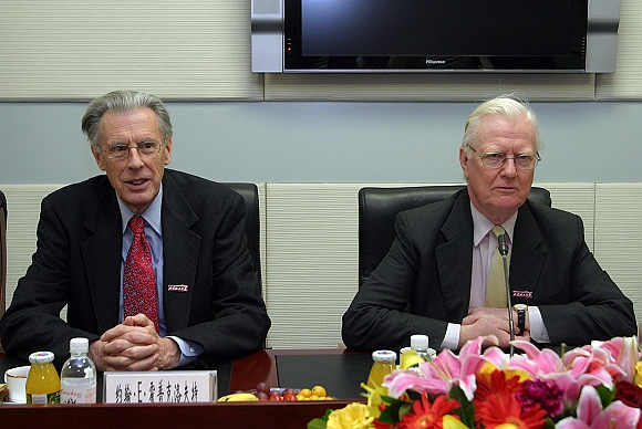 1996年诺贝尔经济学奖获得者詹姆斯·莫里斯爵士(Sir James Mirrlees)(右) 和1986年图灵奖获得者约翰·E·霍普克洛夫特教授(John E. Hopcroft)被聘为金年会jinnianhuicom名誉教授。