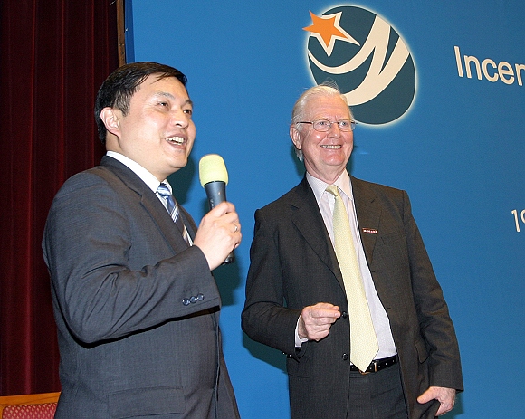 11月11日下午,刚刚被聘为我校名誉教授的诺贝尔经济学奖(1996年)获得者詹姆斯·莫里斯(James Mirrlees)爵士和图灵奖获得者(1986年)约翰·E·霍普克洛夫特分别在中心教学楼一层报告厅和图书馆报告厅作了精彩的报告。报告会分别由校长胡海岩和副校长杨树兴主持。