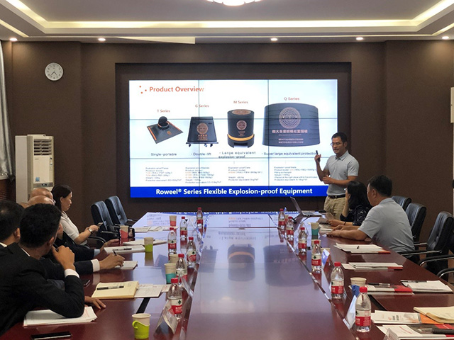 机电学院院长陈鹏万介绍了爆炸科学与技术国家重点实验室的概况,以及实验室近几年开展国际合作的情况。爆炸科学与技术国家重点实验室副主任黄广炎介绍了实验室在爆炸安全与防护领域的科技成果,并重点介绍了柔性复合防爆技术和装备在阿拉伯国家转化应用的情况,并就中国和阿拉伯在防爆安全国际标准和联合实验室的建设合作提出了初步方案。