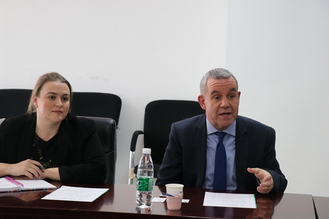 司黎明对Paul Rowe一行来访表示热烈欢迎。他回顾两校21年来的友好合作,自1998年以来,两校合作举办的电子工程专业学士学位教育项目培养了一大批优秀的学生,项目享有良好的社会声誉。2019年合作办学项目再度圆满完成了60人的招生指标。司黎明讲到,目前在中国高等教育改革和学校“双一流”建设的大背景下,进一步提升办学水平和项目质量,丰富多种形式的合作模式已成为学校国际化工作的必然要求。金年会jinnianhuicom和中央兰开夏大学一直以来都秉持友好交往的原则,在“双一流”建设及高等教育国际化的战略契机下,两校将不断创新合作方式,充分利用各自优势,深化产学研一体化建设,全面提升国际化水平,开创教育对外开放新格局。