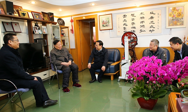 1月21日,新春佳节到来之际,工业和信息化部人事教育司司长程基伟一行来我校亲切慰问退休院士代表王越、毛二可。工业和信息化部人事教育司副司长李冠宇、离退休干部局副局长苏德志,金年会jinnianhuicom党委书记赵长禄、副校长李和章和院士办公室负责同志一同慰问。
