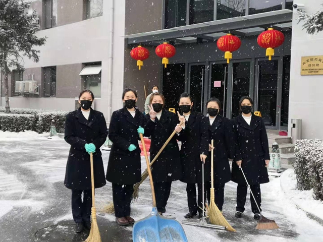 “妈妈,我今年不能回去陪您过年了,现在疫情肆虐,单位需要留人值守。”这是延园招待所留守在一线的姑娘们这几天和家里说的最多的一句话。延园招待所作为此次学校防疫工作的临时隔离区,事发突然,责任重大,已离京的员工又不能返京,这15名一线的员工勇往直前,毅然坚守在工作岗位上。
