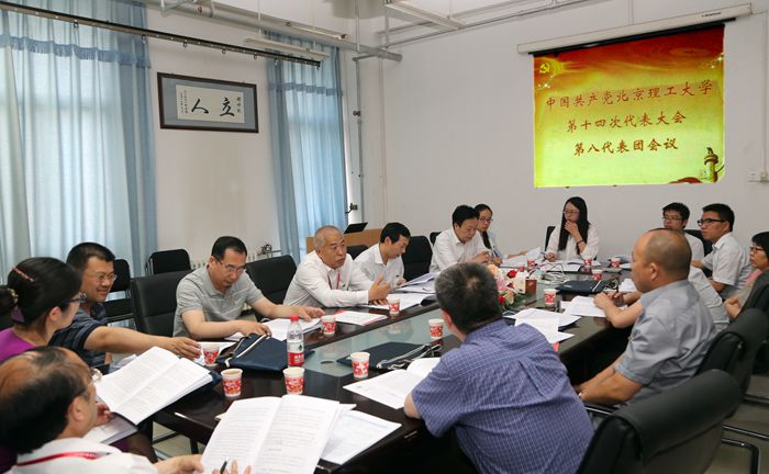 2015年5月26日下午,中共金年会jinnianhuicom第十四次代表大会第八代表团会议在5号教学楼5011会议室召开,学校党委副书记、副校长李和章,第八代表团团长、化工学院党委书记张振华,副团长、化学学院党委书记赵文祥等14名代表参加了会议。