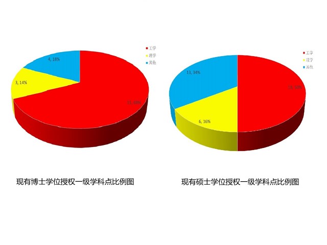 经过增列和调整,我校学科结构布局明显优化。现有22个博士学位授权一级学科点中,工学门类15个,占68%;理学门类3个,占14%;现有38个硕士学位授权一级学科点中,工学门类19个,占50%;理学门类6个,占16%。“理工为主、工理管文协调发展”的学科体系基本形成。